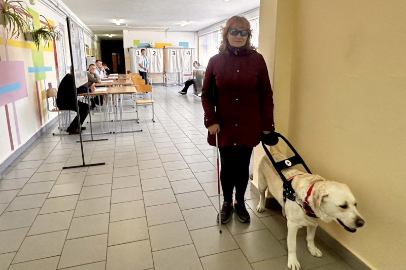 Проголосовали наши верные избиратели Татьяна Кирьянова и собака-проводник Жохар