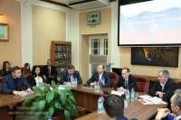 25 января 2017 года в Уральском институте управления Российской Академии народного хозяйства и государственной службы при Президенте РФ состоялось очередное заседании клуба политологов. Представители органов государственной власти, общественных объединений и молодежь обсудили перспективы карьерного роста, выделили качества, особо ценные для успешного продвижения по карьерной лестнице, выделили проблемы трудоустройства на государственную службу. В числе приглашённых экспертов были Виктор Шептий, секретарь Свердловского регионального отделения партии «Единая Россия», Александр Александров, директор Института, Вадим Дубичев, первый заместитель руководителя Администрации Губернатора Свердловской области, Александр Косинцев, депутат Екатеринбургской городской Думы, Елена Чечунова, заместитель председателя Законодательного Собрания, Ольга Глацких, директор департамента молодёжной политики Свердловской области, а также ведущим клуба был Андрей Мозолин, директор исследовательского центра «Аналитик». На заседании от Молодежной избирательной комиссии Свердловской области присутствовали: - Сверчков Михаил Николаевич, заместитель Председателя Комиссии; - Виноградова Ирина Маратовна, Секретарь Комиссии; - Темняков Вячеслав Валерьевич, член Комиссии. |