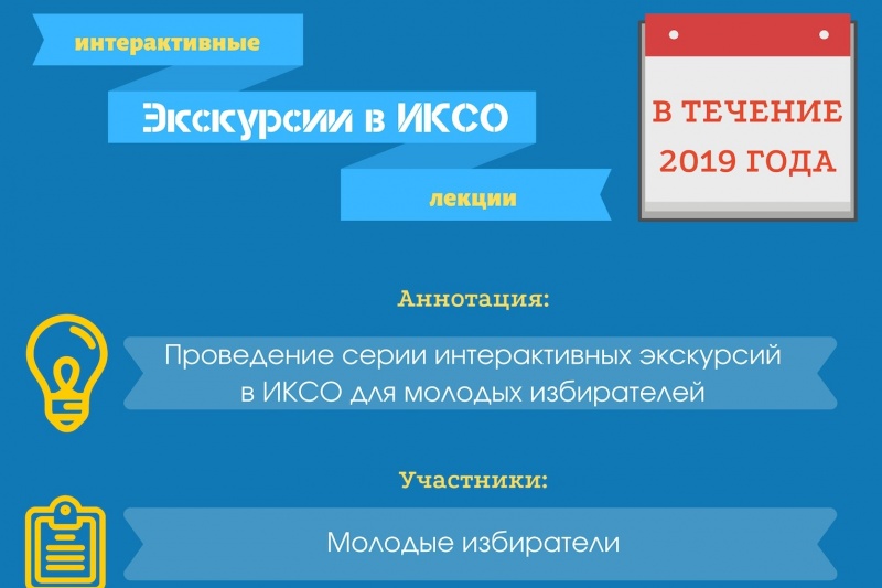 «Экскурсии в ИКСО» – проведение серии интерактивных экскурсий в Избирательной комиссии Свердловской области для молодых избирателей и членов избирательных комиссий. Руководитель проекта: Иринка Виноградова