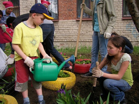 Июнь, отмеченный главным праздником всех мальчишек и девчонок, традиционно становится Месячником защиты детей. Ежегодно первый день лета дает старт всевозможным конкурсам, играм и акциям, призванным привлечь внимание общественности к проблемам маленьких граждан, проявить инициативность и оказать посильную помощь тем ребятам, которые в ней нуждаются. Так, 4 июня Молодежная избирательная комиссия С Вооружившись садовым инвентарем – лопатами, граблями, ведрами и лейками, «акционеры» под чутким руководством агрономов занялись посадкой цветов. Вскопали участки, отведенные под цветники, сформировали клумбы и высадили в них сотни ирисов, петуний и бархатцев. Местная ребятня с большим усердием помогала старшим товарищам – каждому хотелось внести свой вклад в озеленение школьного двора, который очень скоро заиграет новыми красками и будет напоминать об этом ярком дне, проведенном с пользой. |