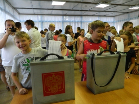 Необычайно интересно и весело провели прошлую пятницу воспитанники Сысертского детского оздоровительного лагеря «Чайка». В этот день, 27 июля, здесь состоялись первые выборы Президента. Кандидаты, избирком и даже «черные» пиарщики и оппозиционеры – все было, как в настоящей избирательной кампании… Каждый отряд признавался политической партией. Все партии – а их было 5 – выдвигали по 1 кандидату в Президенты и по 1 члену в состав избирательной комиссии. В голосовании имели право участвовать все, кто находится на территории лагеря, в том числе вожатые, воспитатели, повара, охранники и другие работники учреждения. Голосование решили провести по мажоритарной системе. Однако голосовать за своего кандидата детям не разрешалось (это могли сделать только взрослые), иначе в предвыборной гонке победил бы тот, кого выдвинул самый многочисленный отряд. Сразу после утренней линейки в лагере началась работа тематических станций «Партии» и «Кандидаты». Члены МИКСО рассказывали выдвиженцам, как правильно составить резюме, предвыборную программу и устное обращение к избирателям. Детский избирком узнал о главных документах, которые должны быть на избирательном участке, о том, как готовятся списки избирателей и форма бюллетеня. Также комиссия провела заседание, где были избраны председатель, заместитель председателя и секретарь ИК. Было видно, что детям интересно участвовать в деловой игре – они увлеченно слушали членов МИКСО, с большим азартом выполняли порученные задания и с нетерпением ждали вечера. И вот, наступил долгожданный момент. Толпа избирателей осаждает участок – детям и взрослым не терпится проголосовать. Но члены избирательной комиссии сохраняют выдержку. В назначенное время над территорией лагеря раздается гимн России, председатель избиркома демонстрирует избирателям, что ящики для голосования пусты, пломбирует их и приглашает собравшихся на участок. Итак, в голосовании приняло участие 173 человека. Большинство избирателей поддержало Оллоёра Камбарова из партии «Патриоты «Чайки» (1 отряд) – он набрал 78 голосов и стал Президентом лагеря. Согласно правилам деловой игры, все остальные кандидаты были признаны министрами. Так, министром спорта стала Не остались без внимания и члены детского избиркома: председатель Иван Серёдкин (5 отряд), заместитель председателя Татьяна Пульникова (4 отряд), секретарь Александр Самонов (3 отряд), члены комиссии Анастасия Абрамова (2 отряд) и Георгий Лыжин Ну, а финальным аккордом дня выборов стала инаугурация избранного Президента. Оллоёр, или Алик, как его называют друзья, перед лицом своих товарищей торжественно поклялся добросовестно выполнять обязанности, возложенные на него избирателями, и предвыборные обещания, активно участвовать в жизни лагеря, бороться с тем, что считает несправедливым, быть честным по отношению к окружающим, заботиться о том, чтобы жизнь в «Чайке» была интересной. |