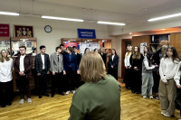 Гости посетили зал заседаний Избирательной комиссии Свердловской области и поучаствовали в деловой игре «Выборы – наша профессия». Ребята узнали об избирательных кампаниях, которые пройдут в сентябре 2026 года, а также о составе избирательных комиссий в Свердловской области. Гостей удивило количество – более 25 000 человек входят в составы УИК и ТИК.