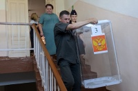 По легенде, на одном из двух избирательных участков, которые размещаются в школе, был обнаружен бесхозный подозрительный предмет – в помещении для голосования в актовом зале. О странном пакете сообщили полицейским, директору школы, в городскую территориальную избирательную комиссию, коллегам на соседнем участке. Была объявлена эвакуация. Урну с бюллетенями опечатали и вынесли за пределы школы.