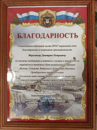 Заместитель председателя Белоярской ТИК Дмитрий Петрович Мерзляков получил благодарность от командования войсковой части.