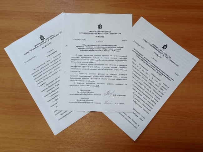 2. Утверждено положение о проведении муниципального этапа конкурса профессионального мастерства организаторов выборов «Лига УИК» в городском округе Дегтярск. Конкурс посвящен 30-летию избирательной системы Российской Федерации и состоится 10 октября 2023 года.