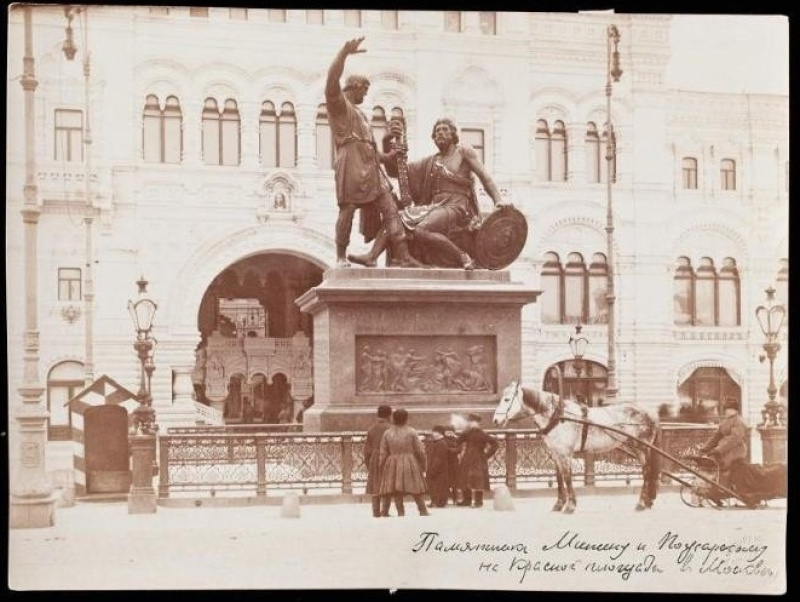 Мазурин А.С. Памятник Минину и Пожарскому на Красной площади в Москве (на фоне нового здания Верхних торговых рядов).