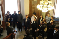 В программу мероприятия также вошла экскурсия по зданию избиркома от члена Избирательной комиссии Свердловской области Анны Абсалямовой. Она рассказала участникам экскурсии об историческом здании, где располагается избирательная комиссия области, а также провела небольшой блиц-опрос по избирательному процессу. Особый интерес у молодых избирателей вызвало дистанционное электронное голосование. По мнению школьников, это один из самых удобных способов принять участие в выборах.