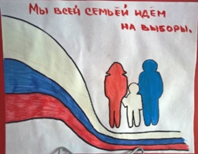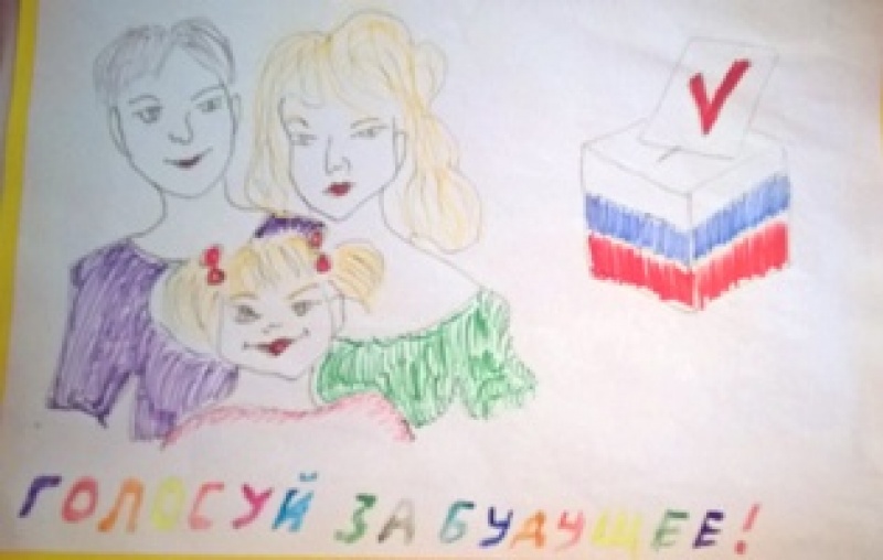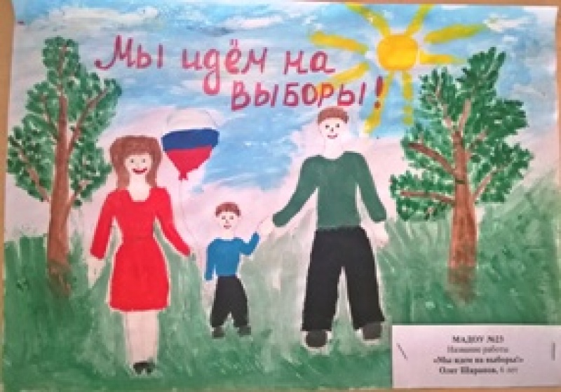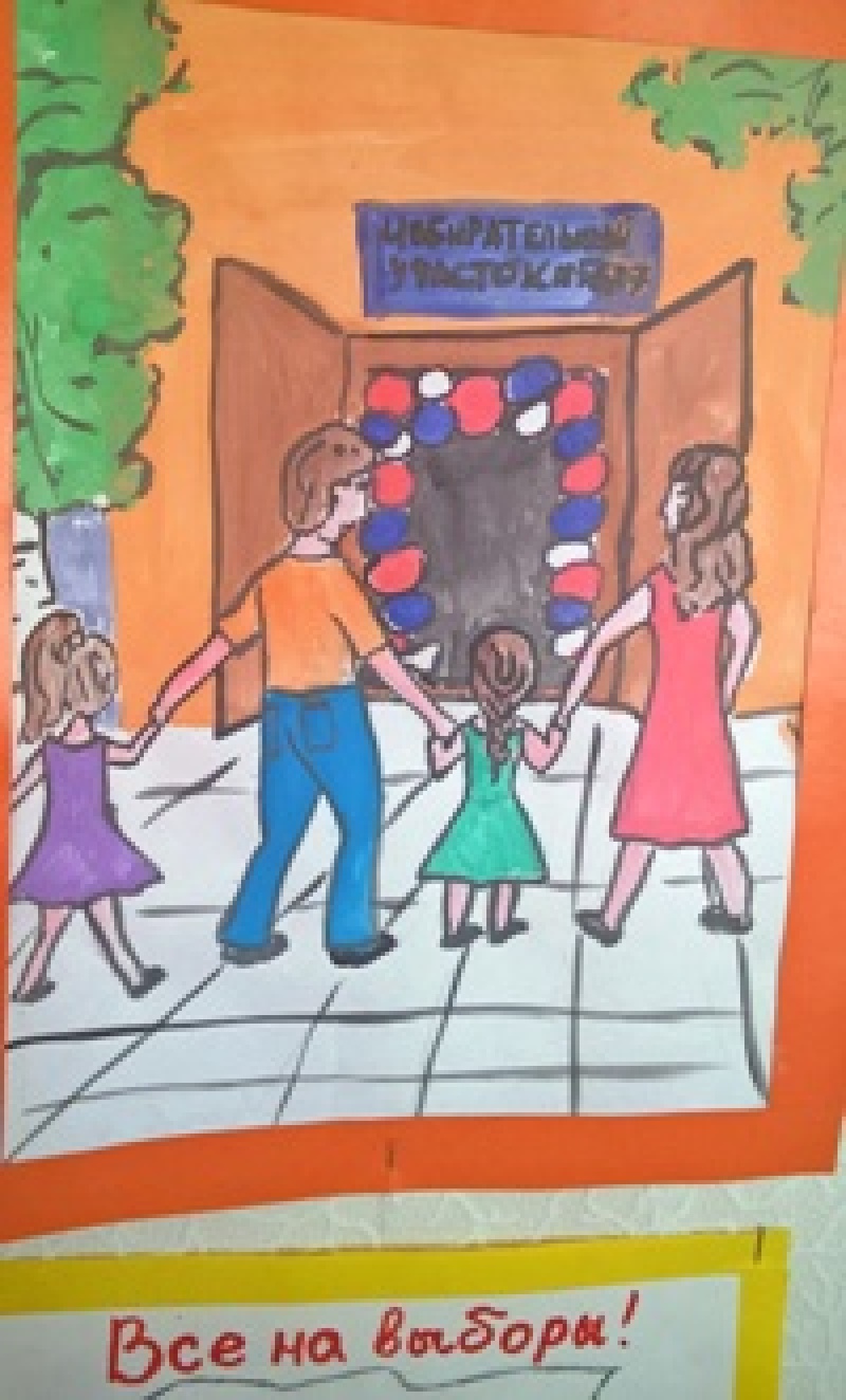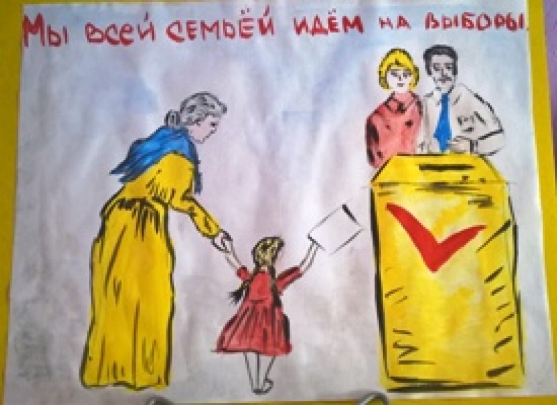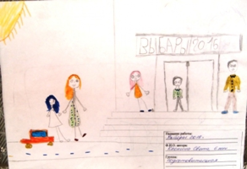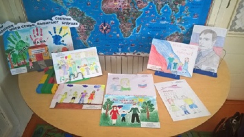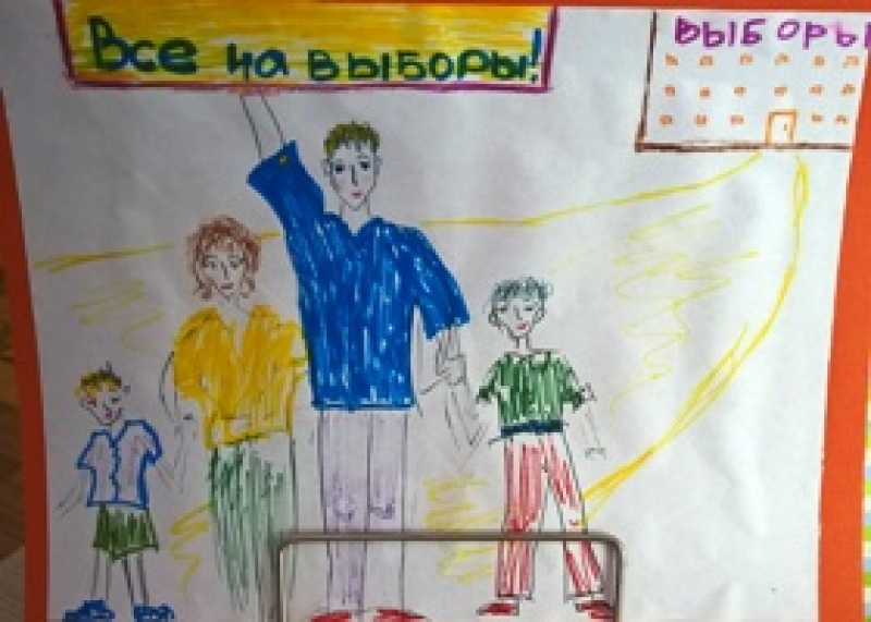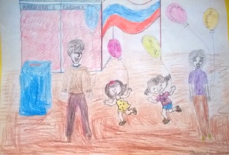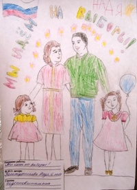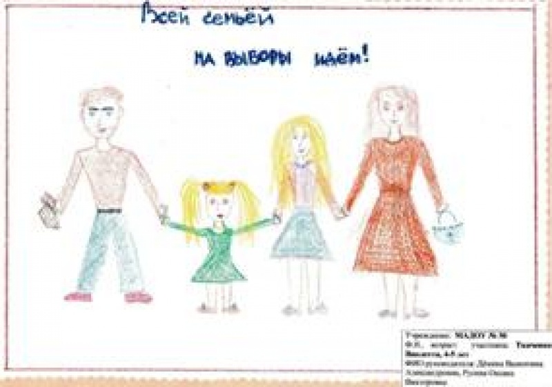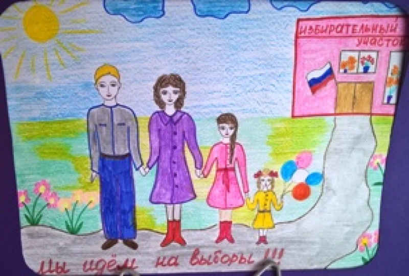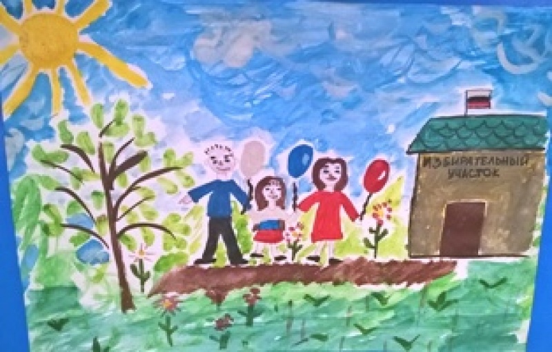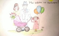 Представлены работы на конкурс детского рисунка "Всей семьей на выборы идем"