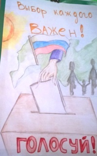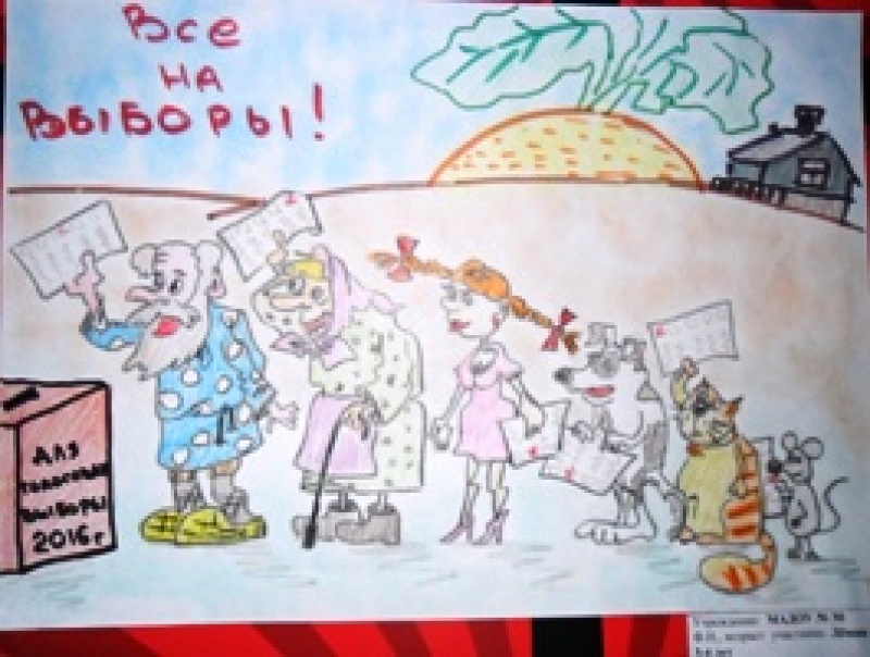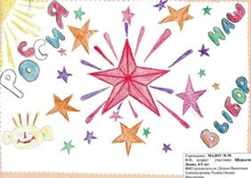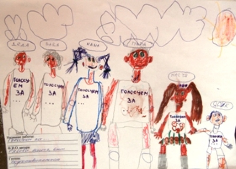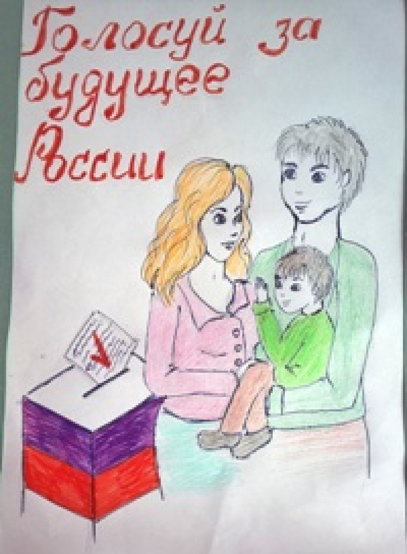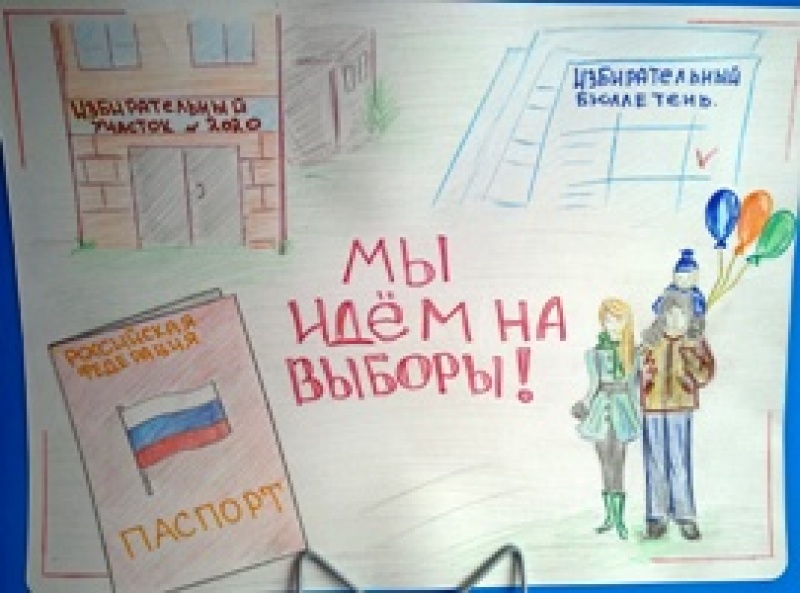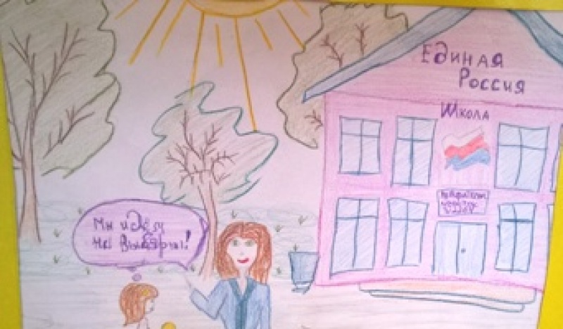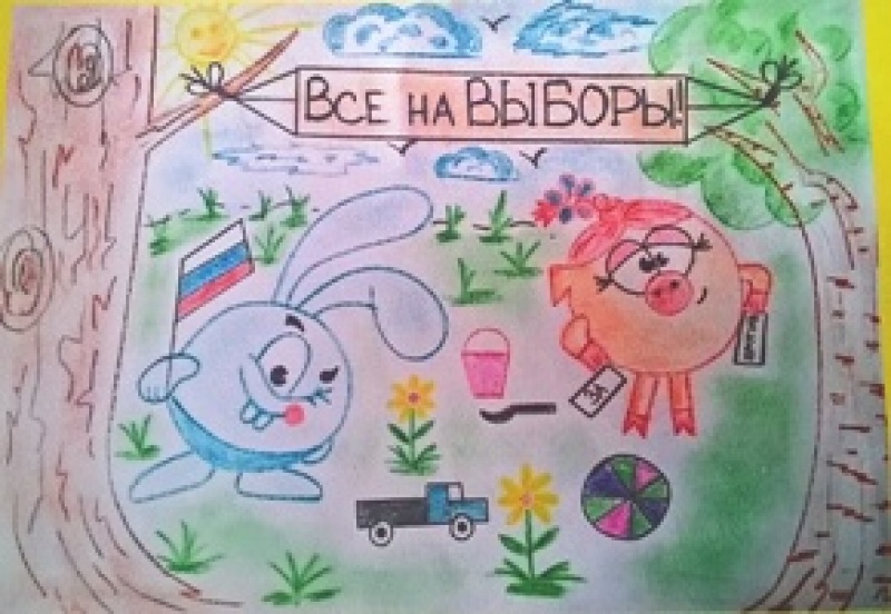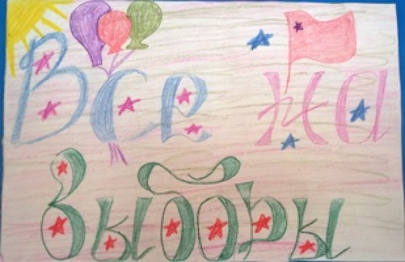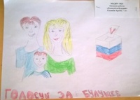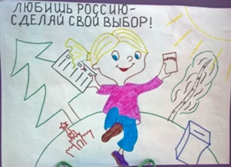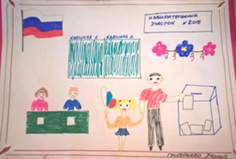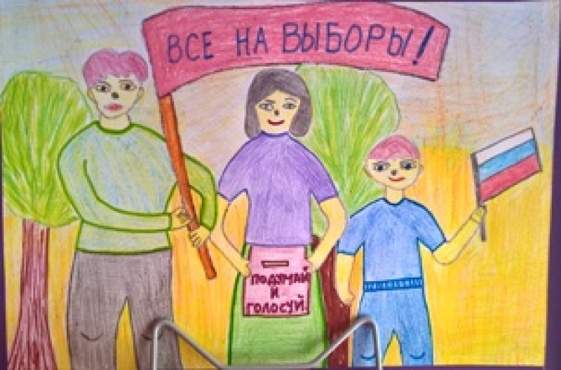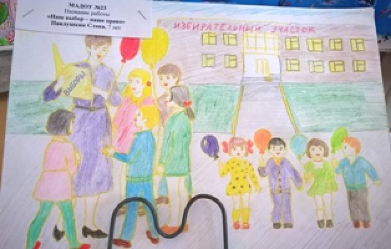 Представлены работы на конкурс детского рисунка "Всей семьей на выборы идем"