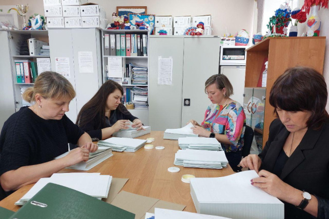 Члены Невьянской районной территориальной избирательной комиссии приступили к двойному пересчету бюллетеней, распределению между участковыми избирательными комиссиями и упаковке.