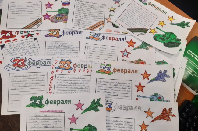 На уроке дети написали письма бойцам на фронт к 23 февраля, которые отправят с гуманитарным грузом из Среднеуральска.