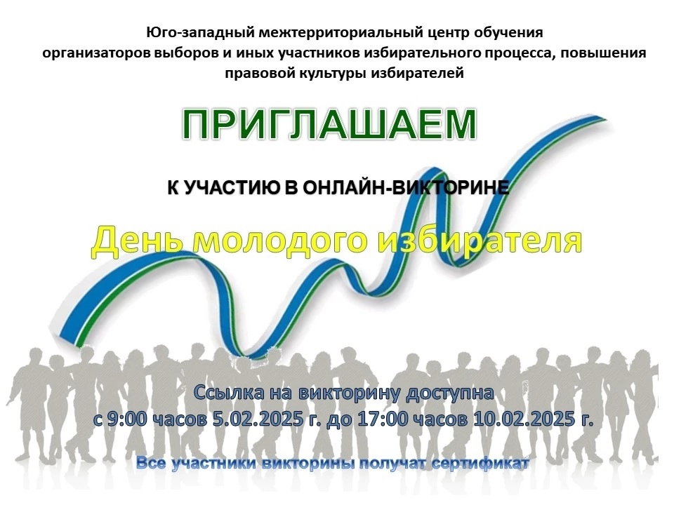 Друзья, приглашаем к участию в викторине «Молодой избиратель», посвященной Дню молодого избирателя, который отмечается в Свердловской области 5 февраля.В честь праздника Юго-западный МТЦ предлагает поучаствовать в викторине «Молодой избиратель»