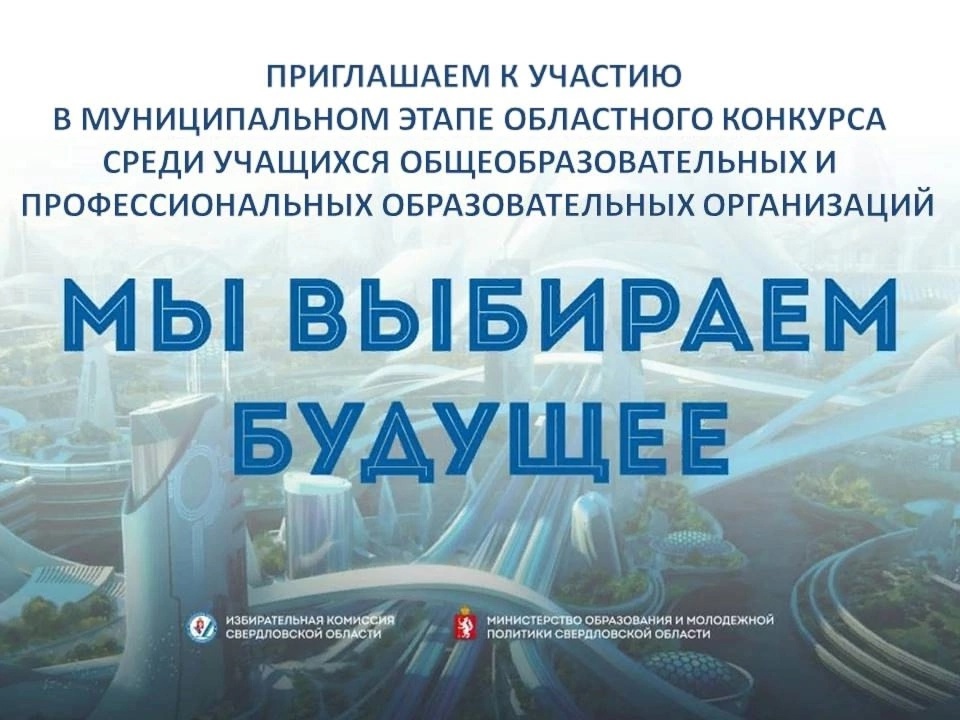 Для участия в муниципальном этапе областного конкурса «Мы выбираем будущее» необходимо представить конкурсную работу в Среднеуральскую городскую территориальную избирательную комиссию, по адресу: Свердловская область, г. Среднеуральск ул. Уральская, д.26, каб. №18 в срок до 10 марта 2025 года.