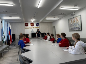 Председатель теркома Ольга Соколова показала свой рабочий кабинет, рассказала о кабинете с ограниченным доступом, где работает системный администратор, в зале ЗАГС, где собирается комиссия на заседания, ребятам предложили заполнить "Азбуку избирателя", а в конференц - зале администрации прошла игра "Нам жить - нам выбирать!" от Верх - Нейвинская поселковая ТИК .