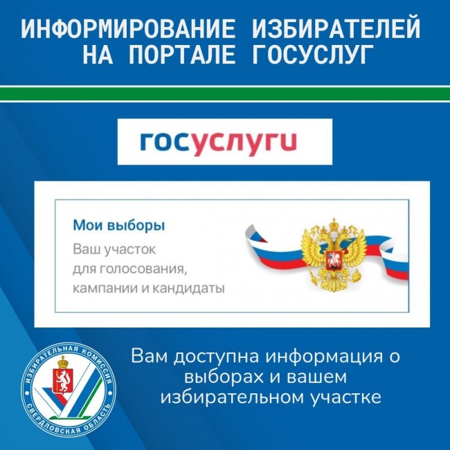 Информирование избирателей: на портале gosuslugi.ru доступен сервис "Мои выборы". Баннер размещен на главной странице как мобильной, так и полноэкранной версии. Каждый избиратель уже сейчас может получить информацию о выборах, номере и адресе своего избирательного участка.