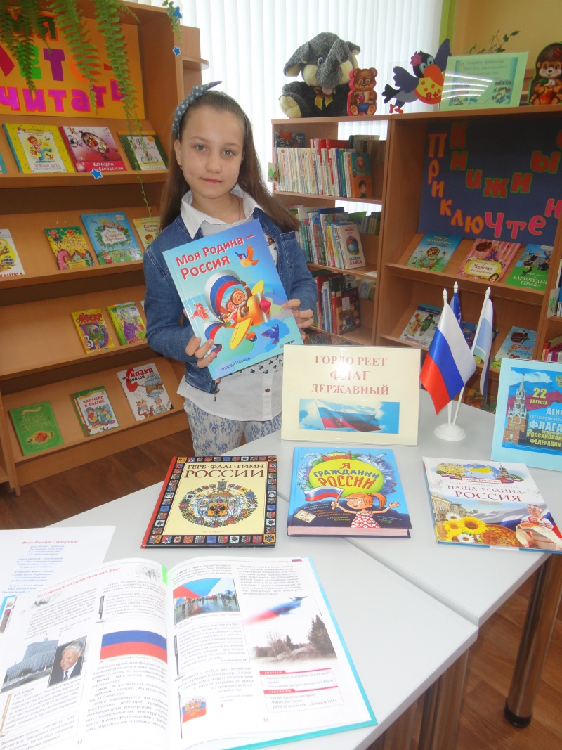 В Детской библиотеке Дворца культуры "Свободный" ко Дню Флага Российской Федерации была организована книжная выставка "Гордо реет флаг державный"