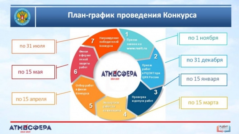 Условия Всероссийского конкурса «Атмосфера» размещены на официальном сайте Российского центра обучения избирательным технологиям при ЦИК России.